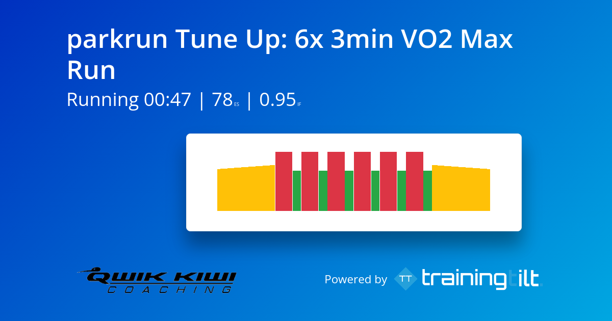 VO2 Max sessions are a great way to build your top end speed, with a short rest like this workout has you will also develop your short term tolerance to higher lactic acid levels. This session is great for athletes running 5km & 10km events, as well as sprint and Olympic distance triathletes.
