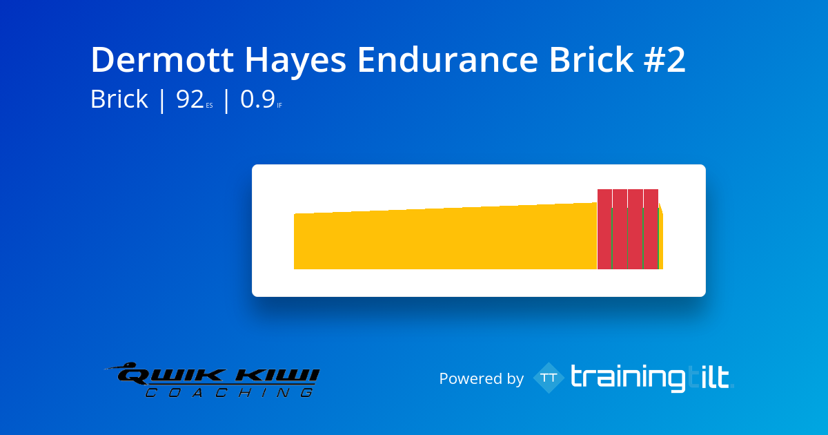 Dermott Hayes’ Endurance Brick #2 takes the aerobic platform from the ride and layers in sustained, race-relevant pressure on tired legs. The 40km at Level II is steady and purposeful — building durability without burning matches — but once you transition to the run, the tone shifts. Four repetitions of 2km at Level IV demand focus, rhythm and the ability to reset quickly off just 30 seconds of recovery. This session isn’t about sprinting; it’s about holding strong, repeatable intensity when fatigue is already present. It’s a brick that builds resilience as much as fitness.